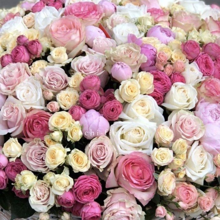 • Пионовый гигант — букет из 50-70 крупных пионов для майского-июньского сезона.