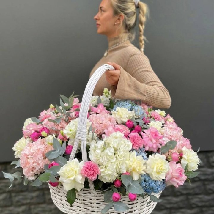 • Корзина-гигант — плетёная корзина из сезонных цветов для торжественных вручений и открытий.