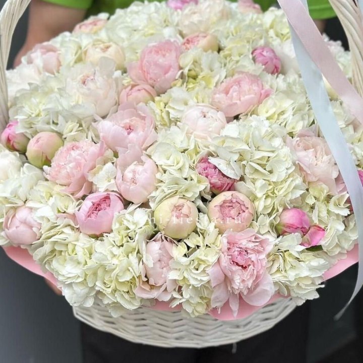 - Пионовый гигант — букет из 50-70 крупных пионов для майского-июньского сезона.