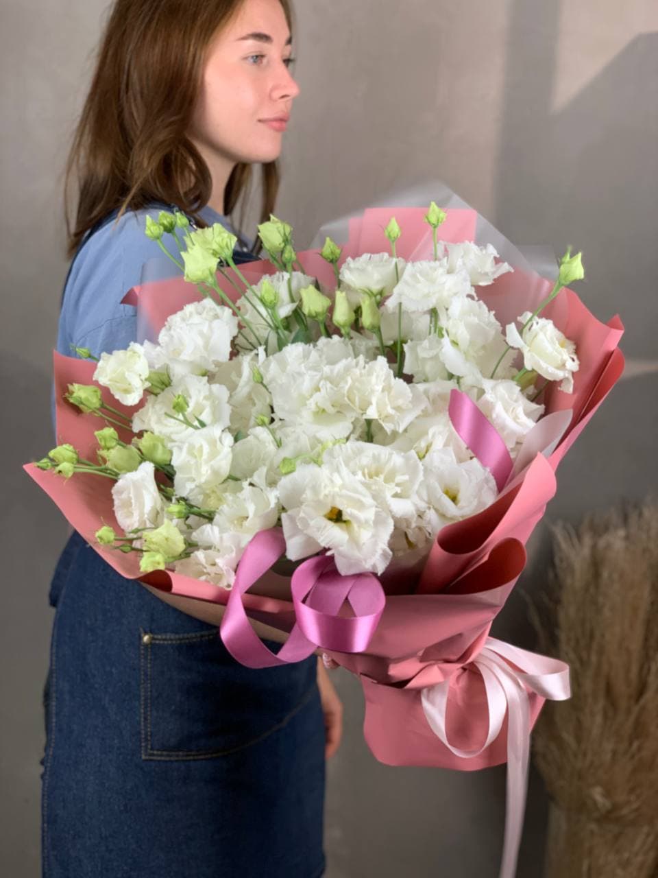 белая эустома под ленту.