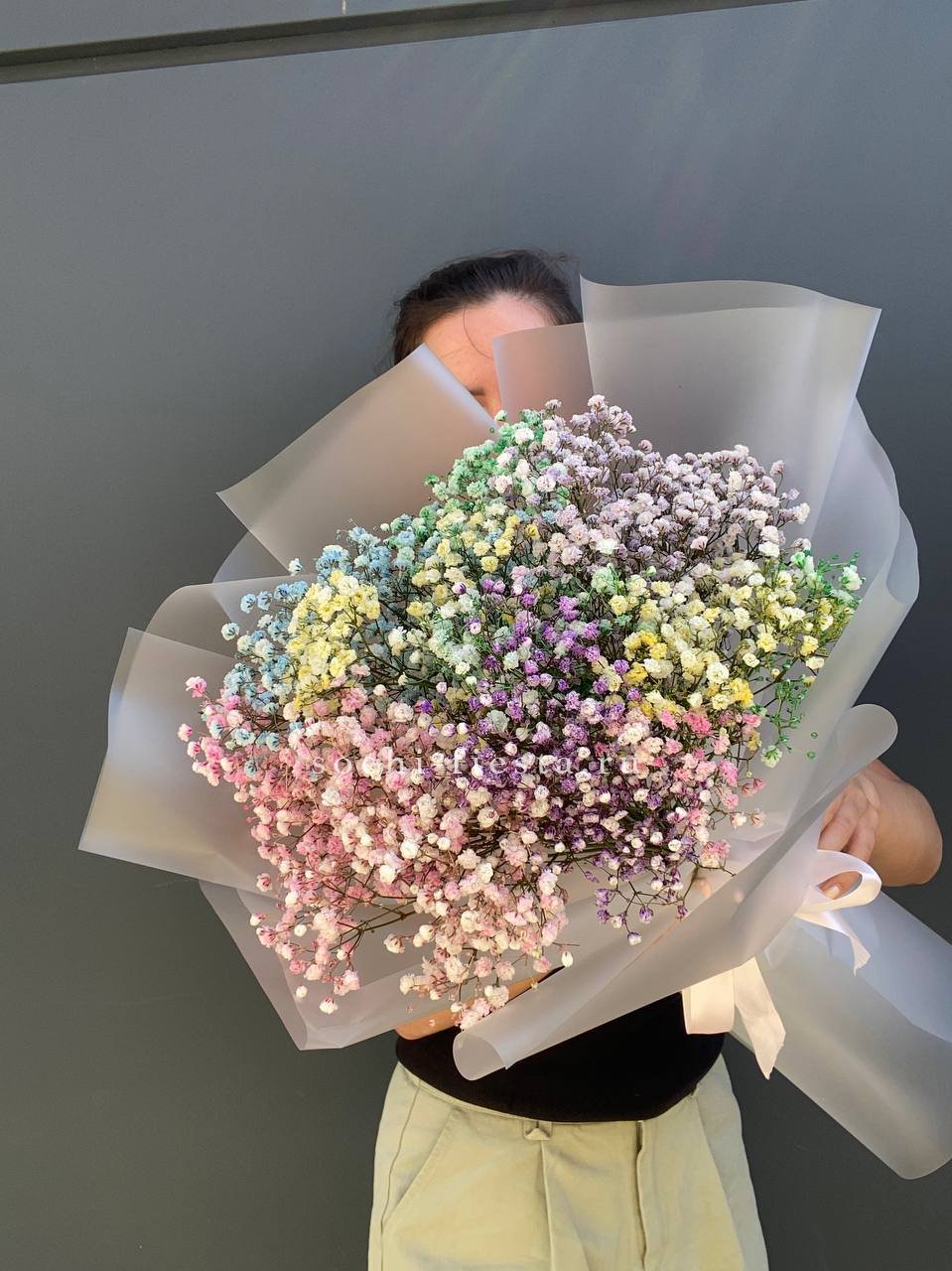 7 радужных голландских гипсофил, лента, комбинированная упаковка.