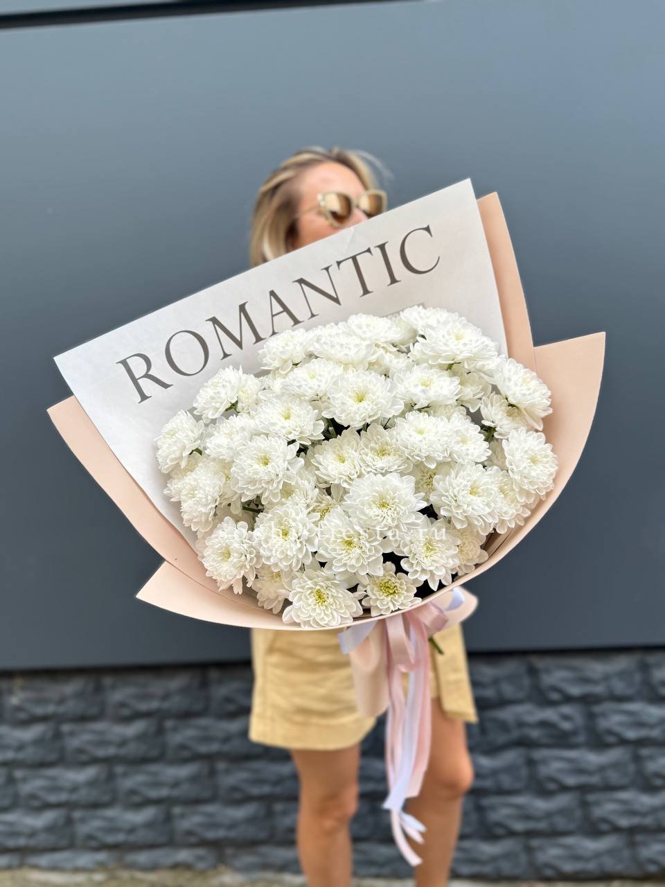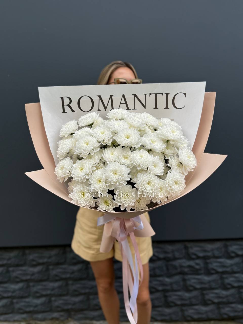 Контрастный микс из белоснежных и лазурных хризантем — идеальный способ сказать о самом важном. Лаконичный дизайн упаковки подчеркивает яркость цветов, а надпись Romantic говорит сама за себя. Подарите незабываемые эмоции и частичку нежности тому, кто вам дорог!
