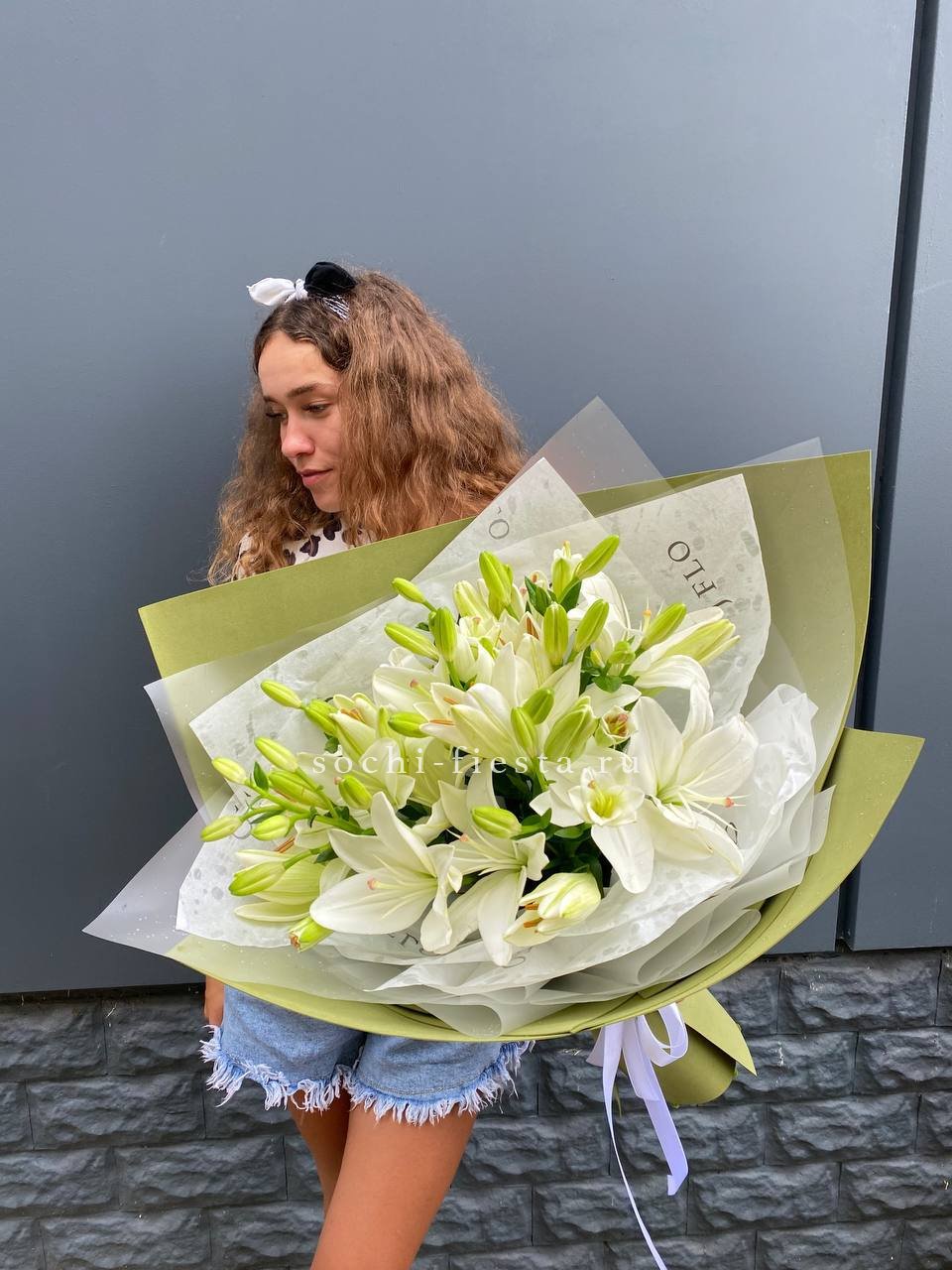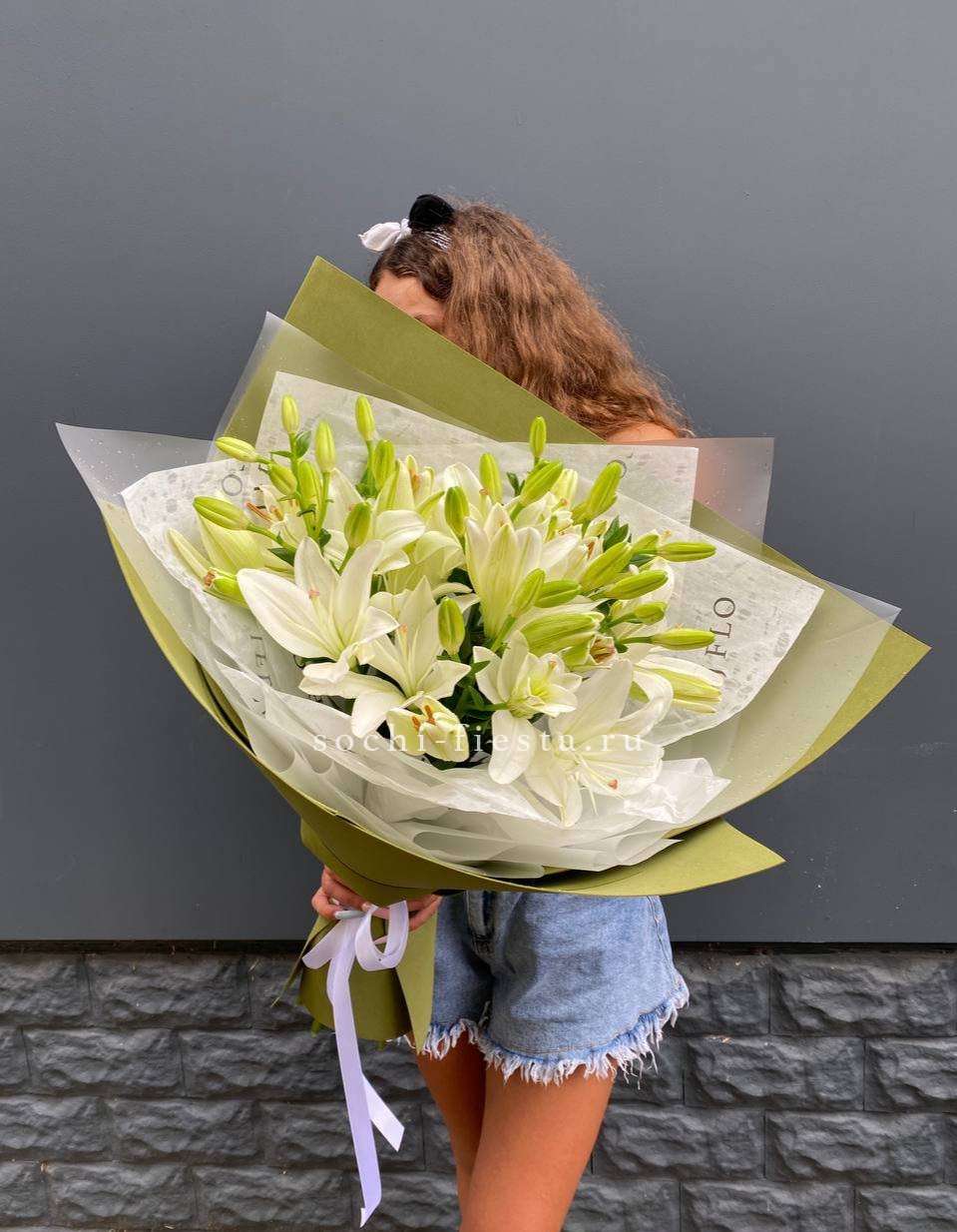 Для заказа товара "Букет лилий "Изумруд"" с доставкой в Махачкале нажмите в корзину
