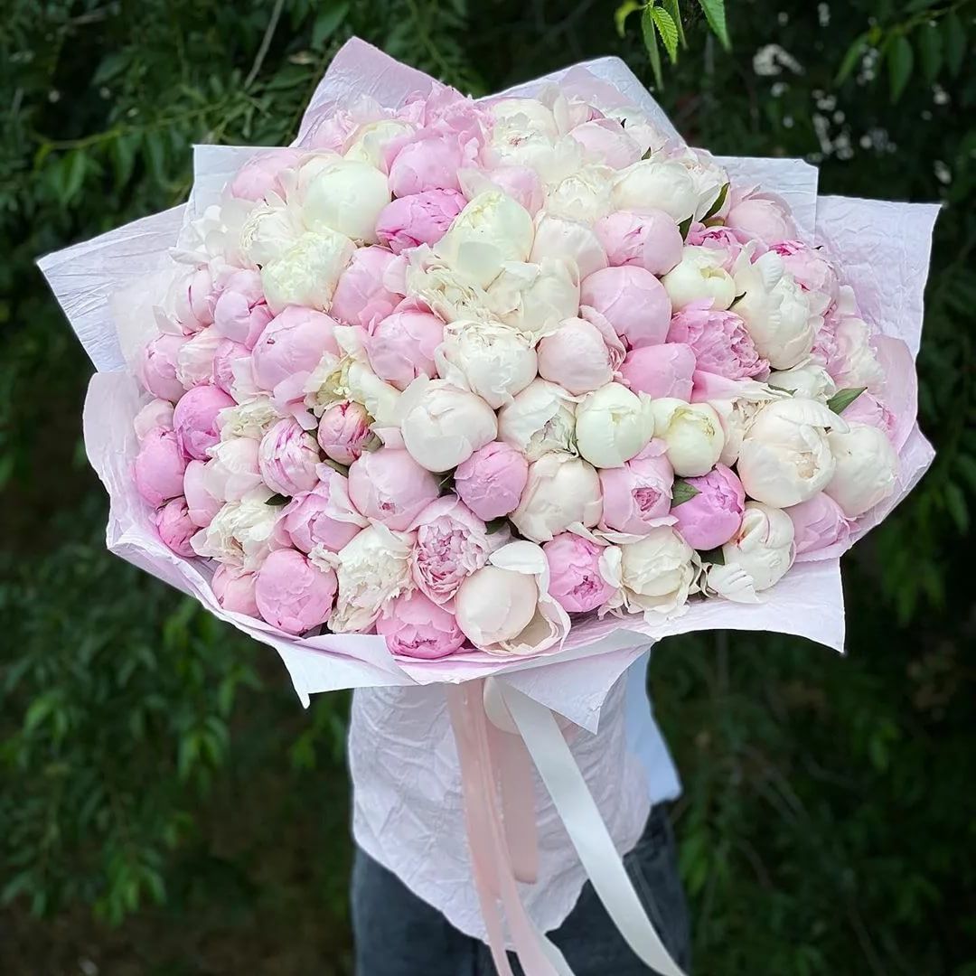 101 пион Сара Бернар и Дюшес, лента, дизайнерская упаковка.