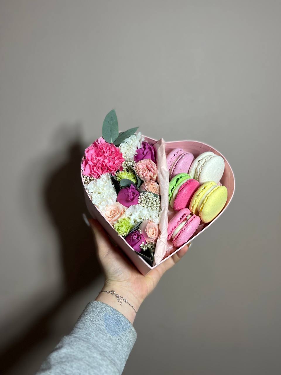 Для заказа товара "Дуо цветы и макаронсы" с доставкой в Махачкале нажмите в корзину