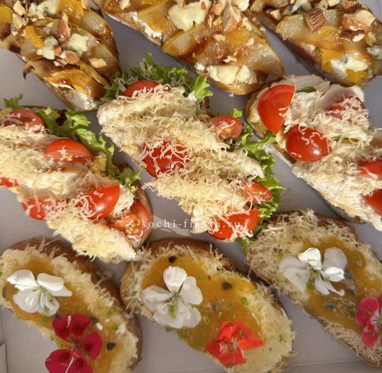 сезонные овощи с муссом из кальмара и авокадо. Щедро уложены в несколько слоев. Вес 2-2,5 кг. Бокс рассчитан на 8-10 персон.