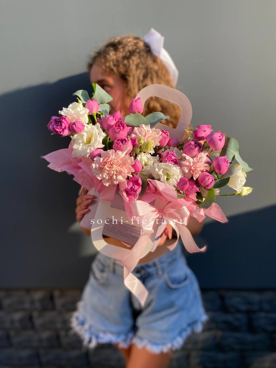 Для заказа товара "Сумочка с кустовой розой и диантусами" с доставкой в Махачкале нажмите в корзину