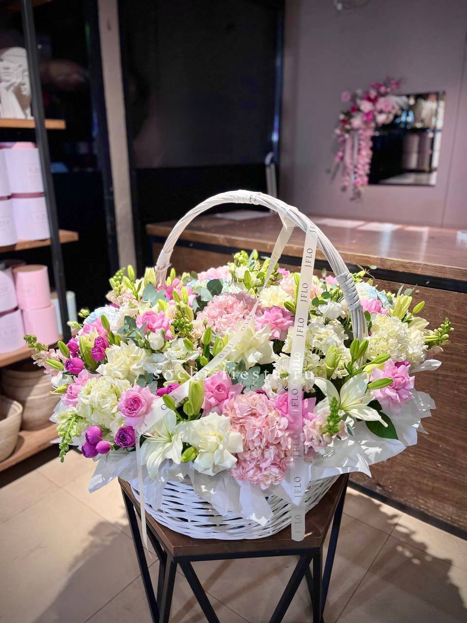 Цветочная корзина "Пинки вайт"