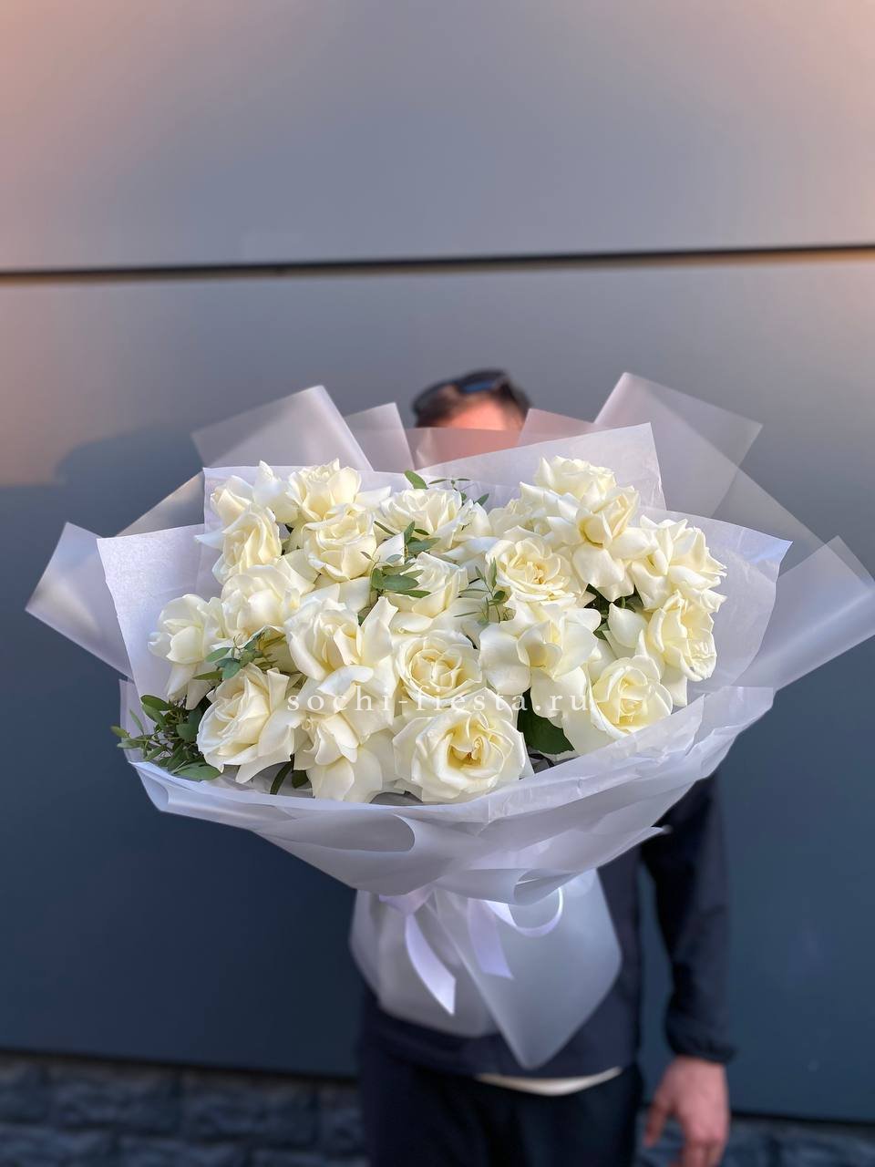 Для заказа товара "Пышный букет из белых роз" с доставкой в Махачкале нажмите в корзину