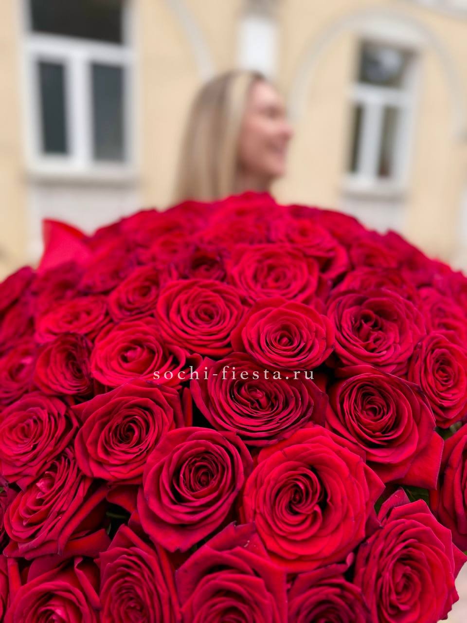 Двадцать пять стеблей выстроены в объёмную композицию с выразительным присутствием. Авторское оформление добавляет завершённость и подчёркивает масштаб букета.