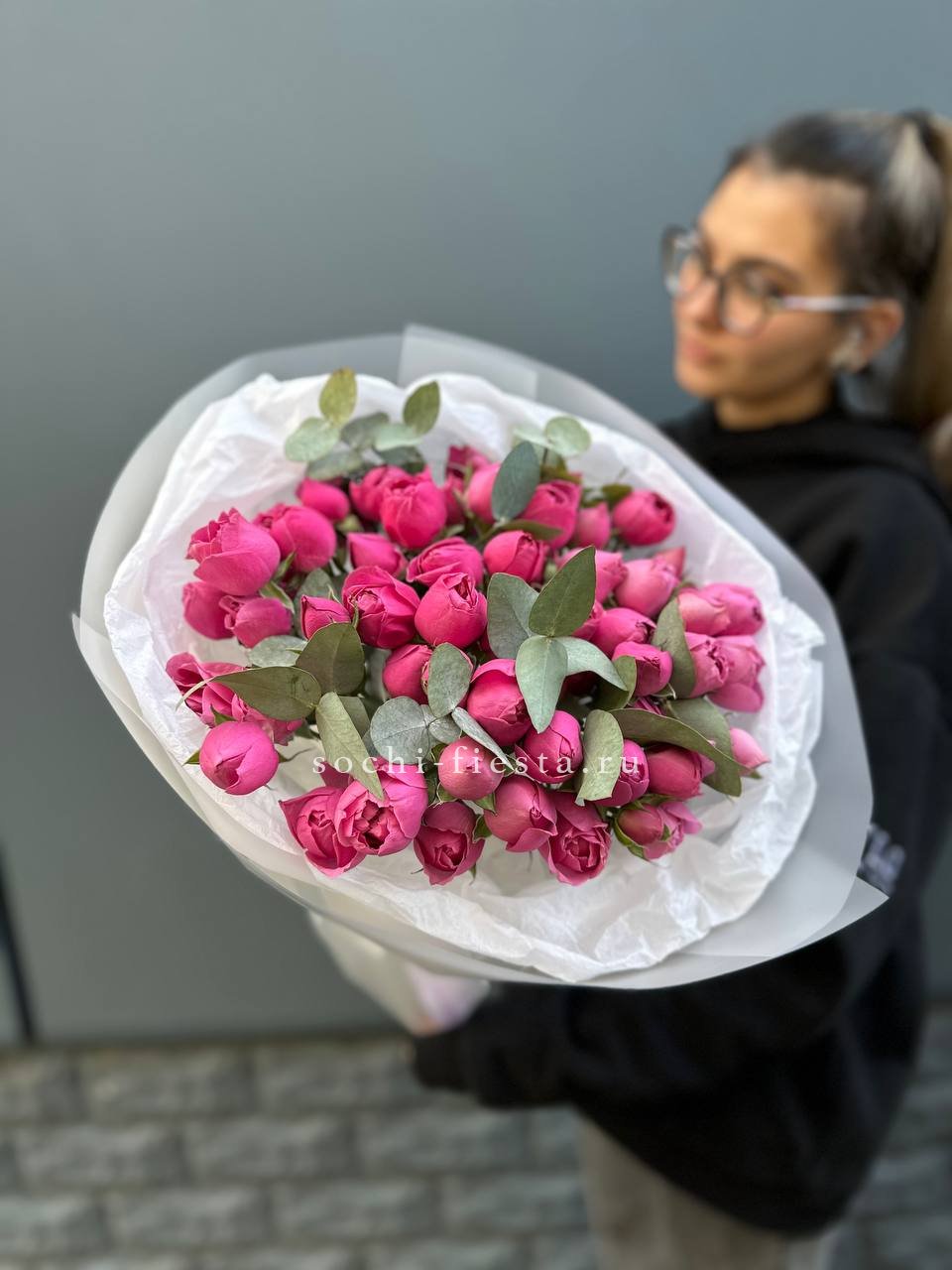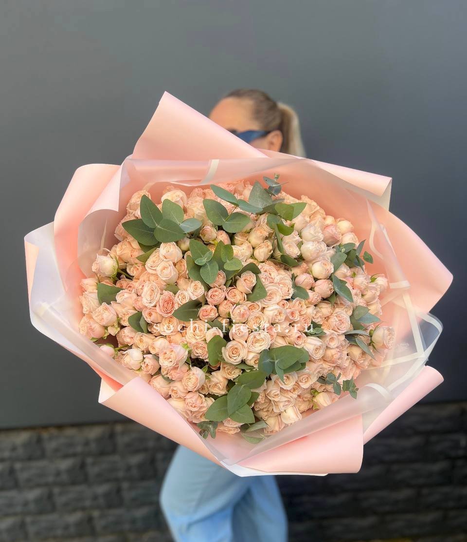 13 кустовых роз Bombastic, лента, дизайнерская упаковка.