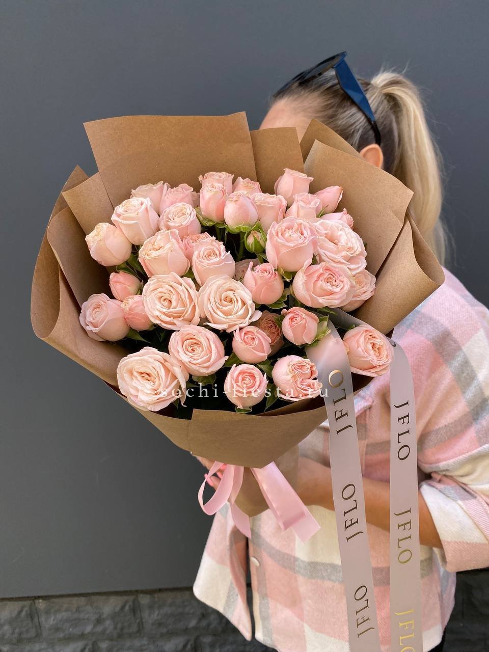 Для заказа товара "Кустовые розы Бомбастик в крафте" с доставкой в Махачкале нажмите в корзину