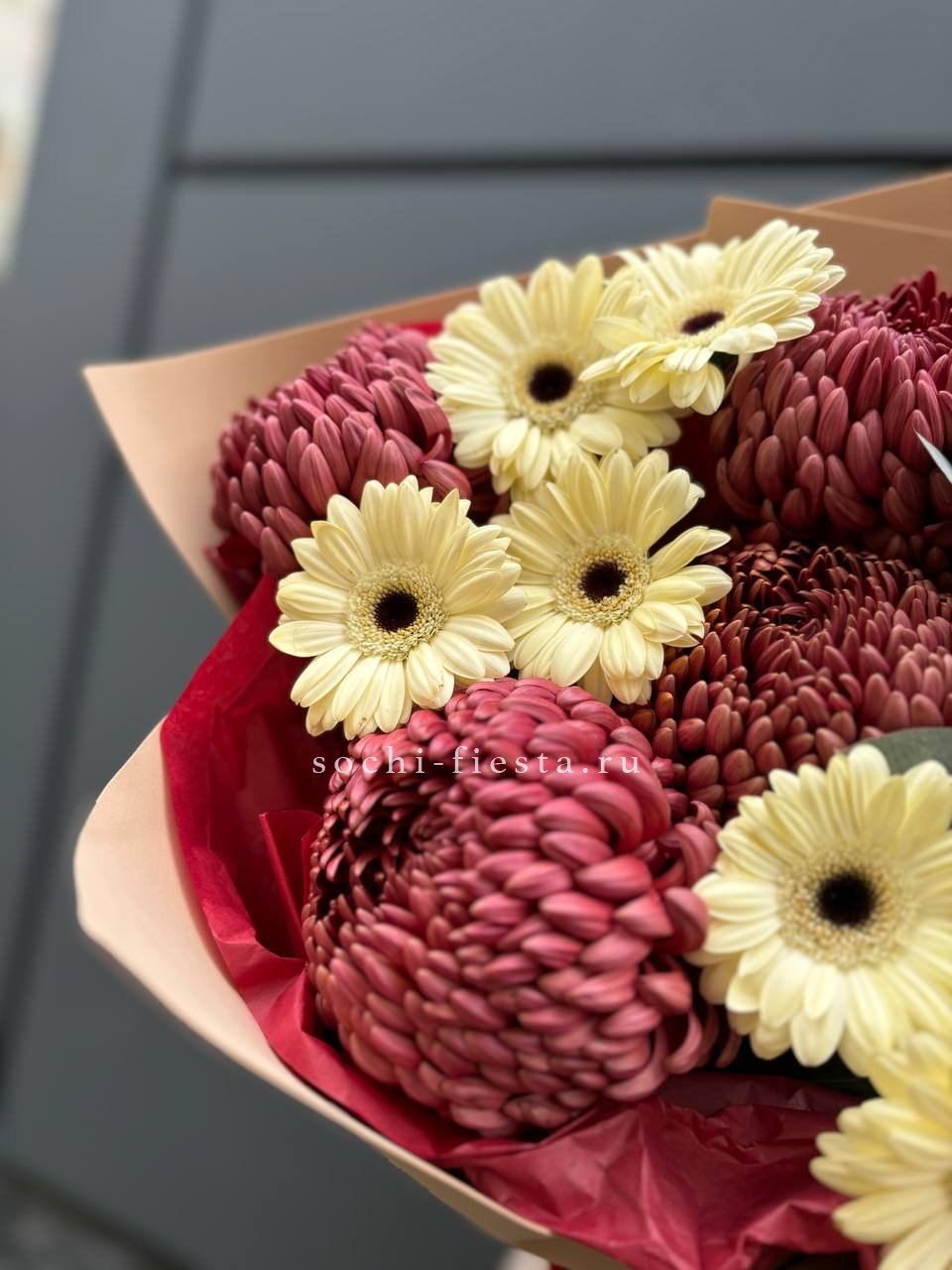 Букет гербер и хризантем Бигуди