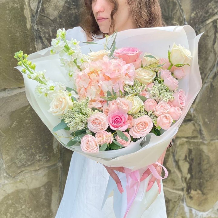 Доставка популярных букетов в Махачкале идёт по стандарту. Сборка — за 15-20 минут до выезда курьера. Иногда флорист сам доставляет заказ — в маленьком городе это естественно и удобно.