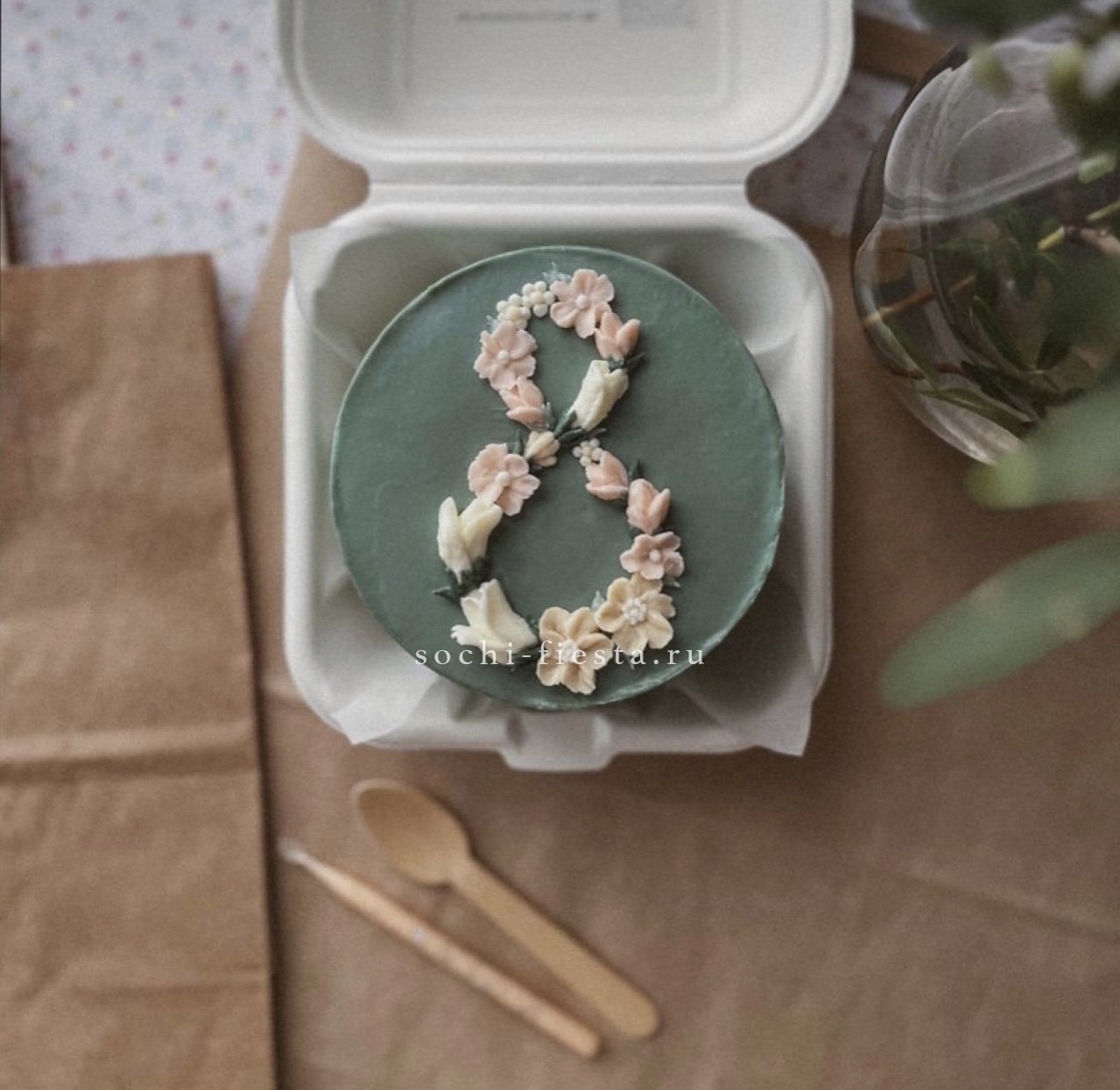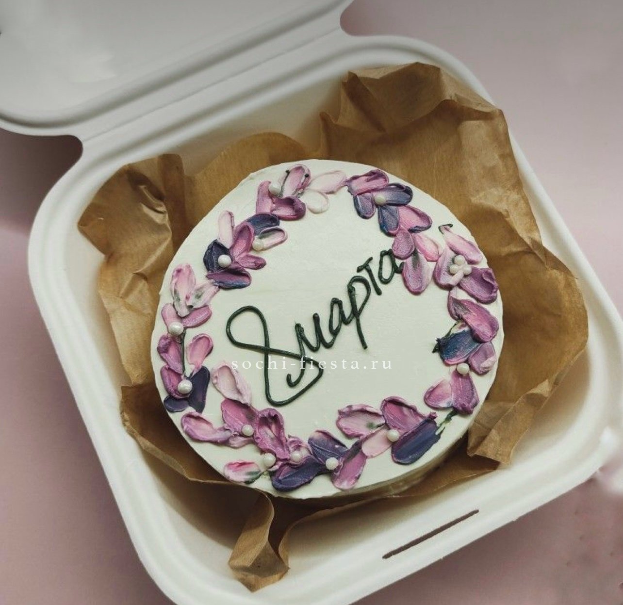 Светлая поверхность с мазками крема и декором в виде бабочек создаёт летнее настроение. Торт сочетает воздушность формы и плотность начинки на выбор из трёх вкусов.